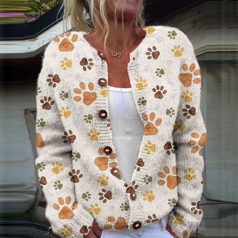 Dog Paw Print Casual Long Sleeve Knitted Cardigan