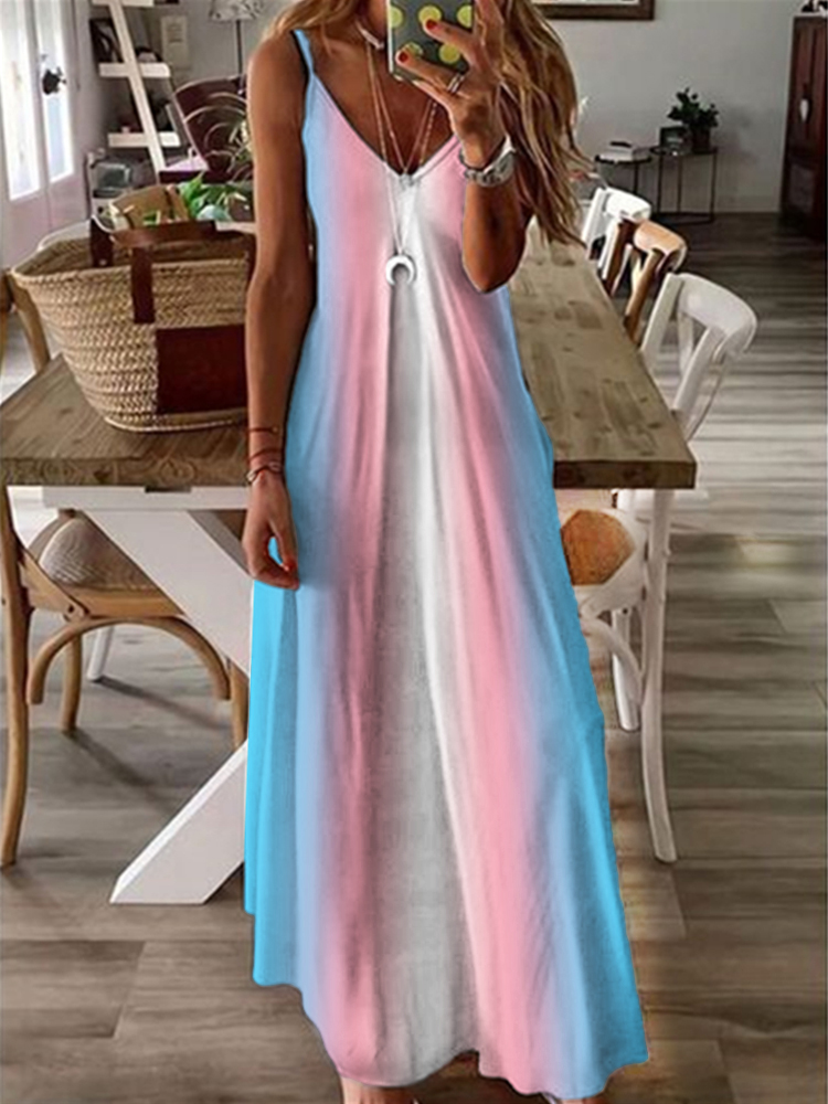 Transgender Flag Inspired Gradient Cami Maxi Dress