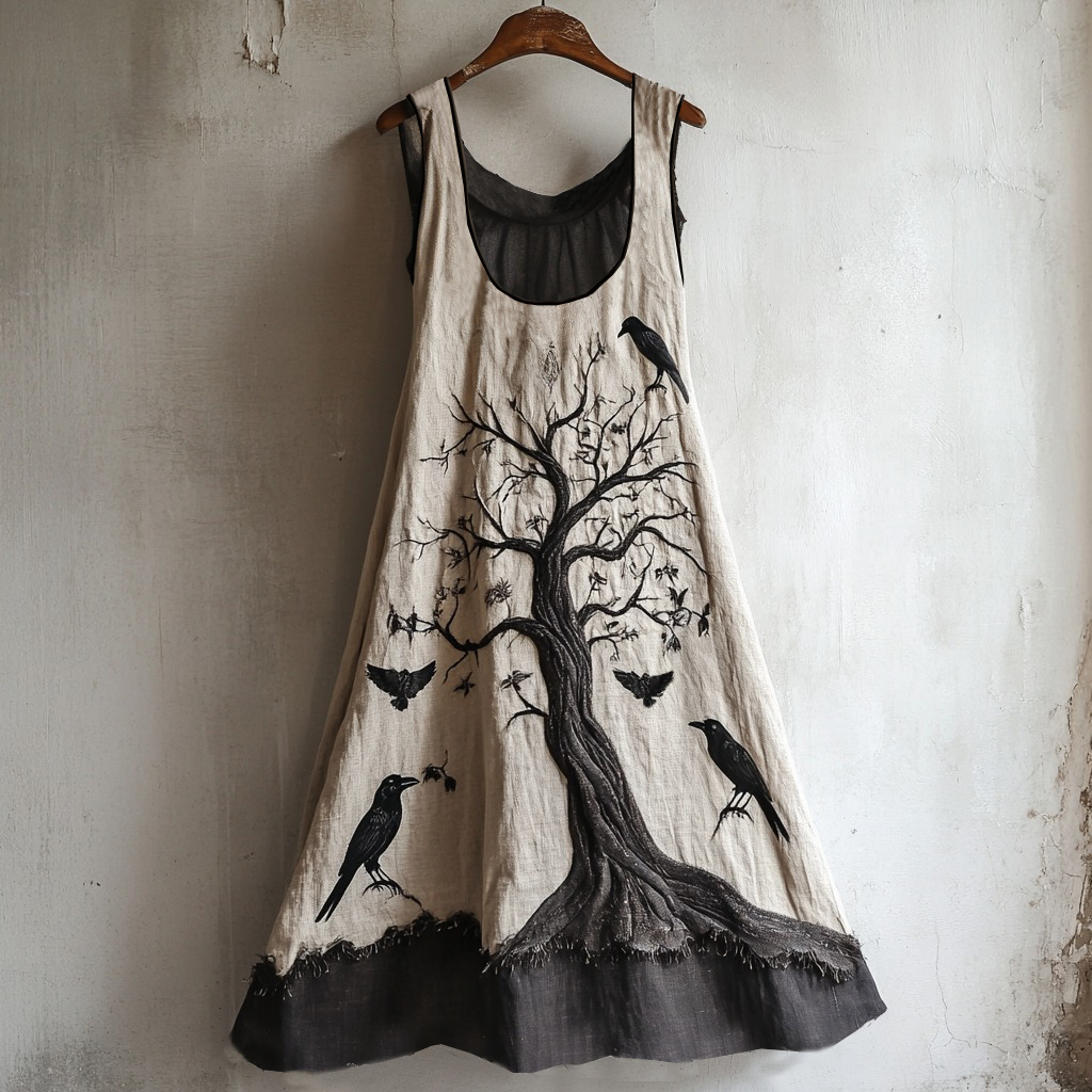 Viking Raven Life Of Tree Linen Tank Maxi Dress