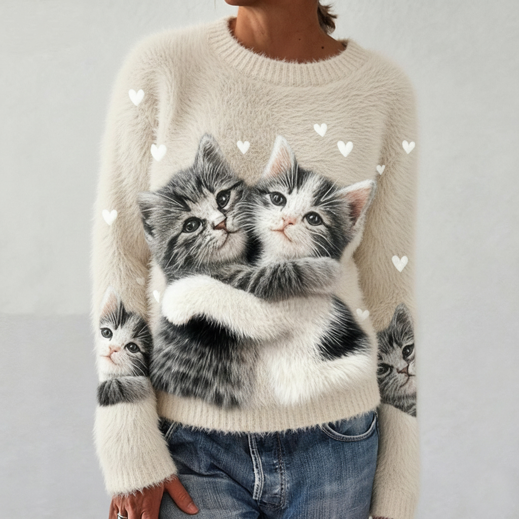 Women's Cute Cat Pattern Cozy Knit Sweater