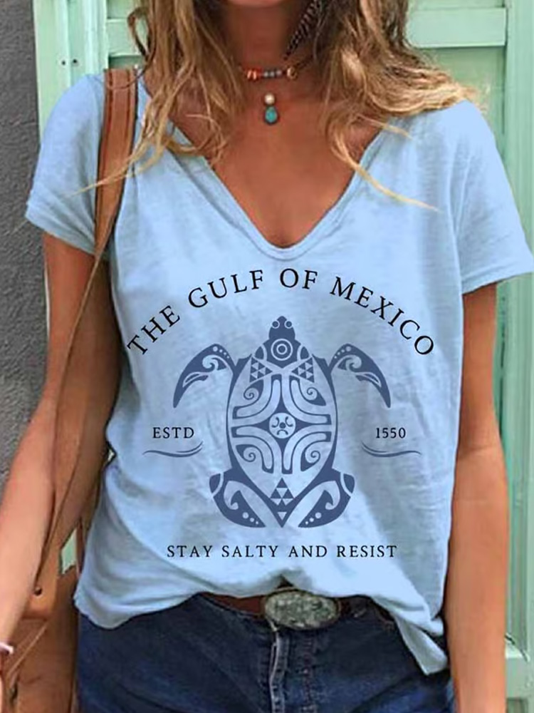 Women's Gulf Of Mexico Print V Neck T-shirt