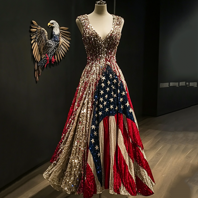 Women's Independence Day Bald Eagle Design Maxi Dress